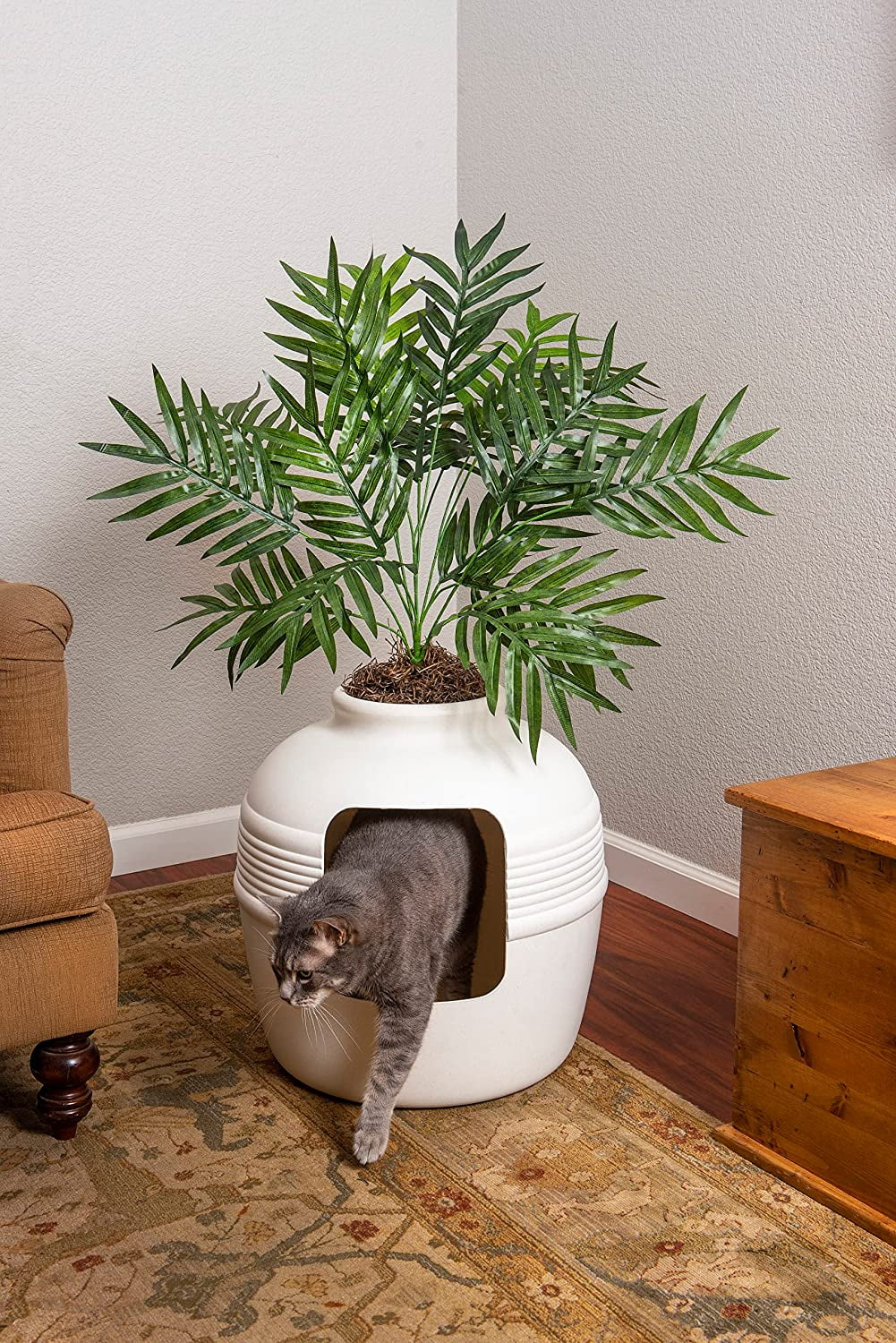 Hidden Litter Box Artificial Plants Enclosed Cat Planter Litter Box Vented Odor Filter Easy To Clean White Birch Walmart Com